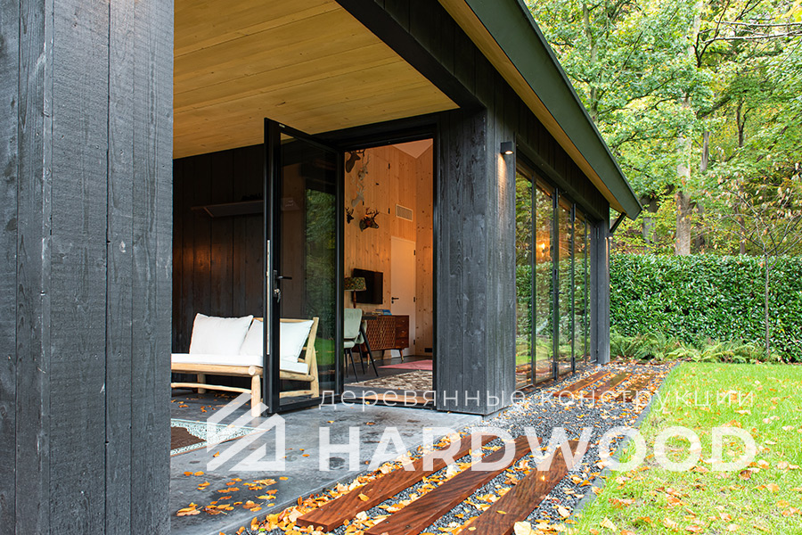 Лофт вырос из индустриальной эстетики: прямые линии, понятный каркас, фактура материалов на первом плане. В беседке это выражается в открытых балках, строгой геометрии, крупном остеклении и функциональности каждой детали. Никакой визуальной «тяжести» — только то, что работает на комфорт и стиль.